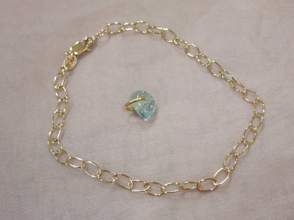 14金ゴールドフィルドK14GFイタリア製フープブレスレット♪デザインがモードでもどこかクラシックレトロなビンテージ系タイプ♪高品質なアクアマリンスムースベリルのプチトップ付きセット♪軽いしゃらしゃらした着け心地が素敵♪約21cm前後で未使用新品☆