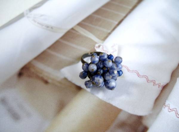 春の予感・・シリーズです♪菫色の花束・・可憐なデニムラピスのリングです♪藍色のラピスは3ミリ、4ミリ、6ミリの丸玉です♪シャワー台に繋いでいます♪トップは2.5センチです♪リングはフリーサイズです♪お揃いのネックレスやバングルも出品しています♪シンプルで飽きのこないいつまでも着けられるデザインを考えて作りました!ハンドメイドをご理解頂いてノークレーム、ノーリターンでお願いします