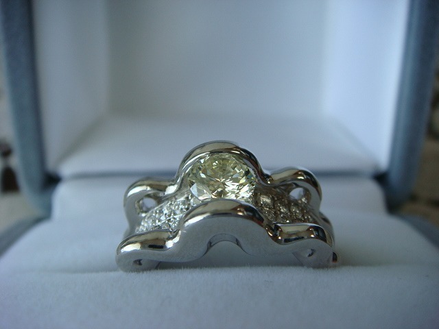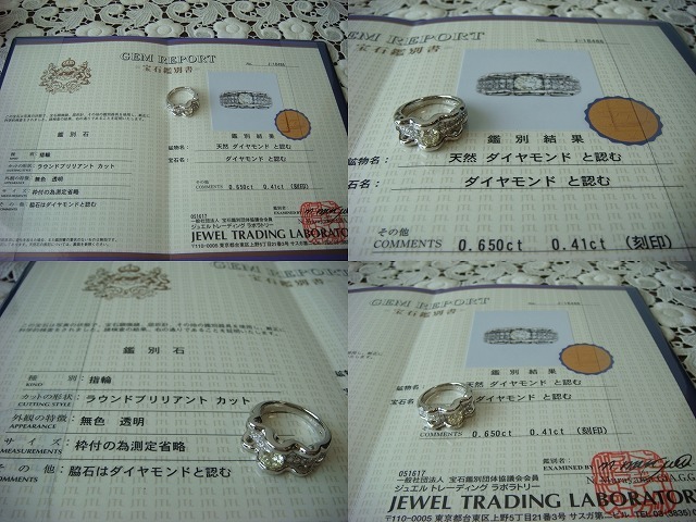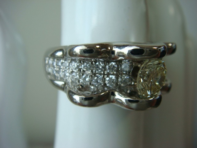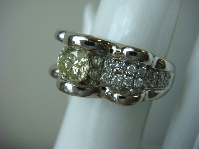 ご覧頂きましてありがとうございます! 豪華なデザインのダイヤモンドリング。サイズは約11,5です。プラチナ製です。Pt900の刻印入り。 中石の大きさは0,650カラットです。イエローです。周りのダイヤは0,41カラットです。重さは約14,5gです。 ダイヤモンドのグレードは鑑定書が無いので分かりませんがSクラスはあると思います。 追加画像がありますのでパソコンでご確認ください。 宝石との出会いは一期一会です。『いいな』と思ったら是非、身につけてあげて下さい。きっと宝石も喜ぶことでしょう! 宝石は決して貴女を裏切りません。身につけた貴女を守ってくれることでしょう。 いつも頑張っている自分へのご褒美にいかがでしょうか? 良いものをひとつお持ち下さい。一生物のジュエリーとなります。 画像での判断は難しいと思いますが、落札後の返品、クレーム等の無きよう、ご自分の自己責任においてご入札下さい。 モニター、パソコン、カメラによって色や感じ方が変わりますのでご注意下さい。 商品についてはコレクター、質屋さん、お客様の委託品が中心ですので、ご質問の答えが遅くなる事がありますがご了承下さい。 商品説明につきましてはすべてをお知らせできませんので、質問にてお願いいたします。 基本的にはUSED品ですので、その点を十分にご理解の上ご入札下さい。 途中で出品を取り下げる場合もありますがご了承下さい。 尚、トラブル回避の為、申し訳ございませんが、新規の方及び評価によってはこちらで入札を削除させていただく場合もございますが、ご理解下さい。 メールの確認は夜になりますのでご連絡が遅くなることもありますがご了承願います。 品物にも人と同じように『こころ』があると思います。喜んでいただけることが私にとっても品物にとっても一番良いことだと思います。 『落札したけど気に入らなかった』ということが無いように十分にお考えになってからご入札下さい。 発送は宅配便を予定しております。また発送には2,3日かかる場合もございますが、ご了承願います。 お互いに気持ちよい取引のため、落札後3日以内のご連絡、5日以内のご入金頂けない場合は申し訳ございませんが取り消しさせていただきます。 落札金額より僅かですが『子ども虐待防止 オレンジリボン運動』へ寄付をさせていただきますがご了承お願いいたします。 | |