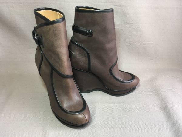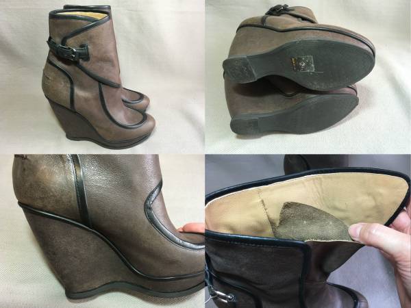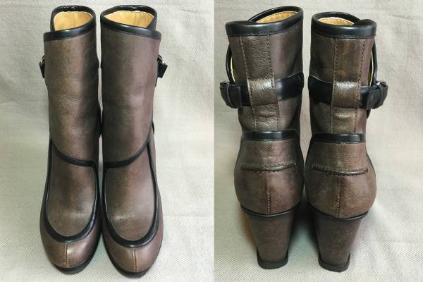 美品 バレンシアガ レザー シューズ 37.5 ブーツ BALENCIAGA 黒 茶 ブラウン チャコールグレー