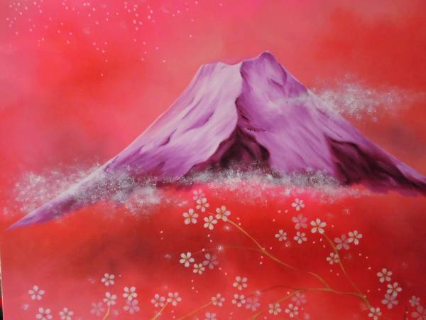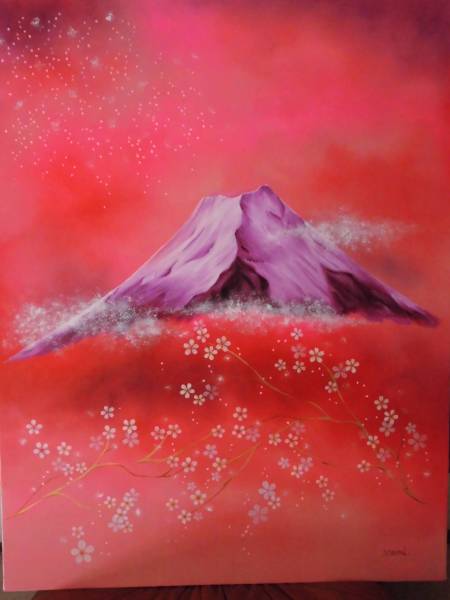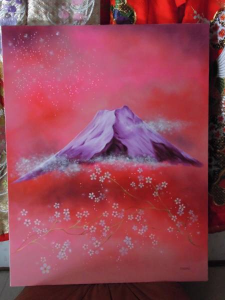 ≪国美協≫橋本のぞみ、『富士山・さくら』、油彩画、F50号:116,7cm×90,9cm、油絵一点物、新品高級油彩額付、直筆サイン・真作保証付