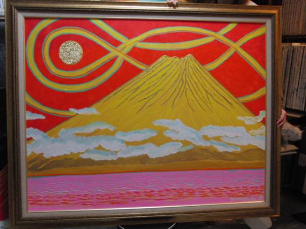 ≪国美協≫TOMOYUKI・友之、『月と金富士、金箔』、油彩画・F50号:116,7×90,9cm、豪華、油絵、一点物、直筆サイン・真作保証付