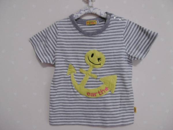 ё アースミュージック&エコロジー ё ボーダー柄コットン半袖Tシャツ ■100cm■グレー | |||