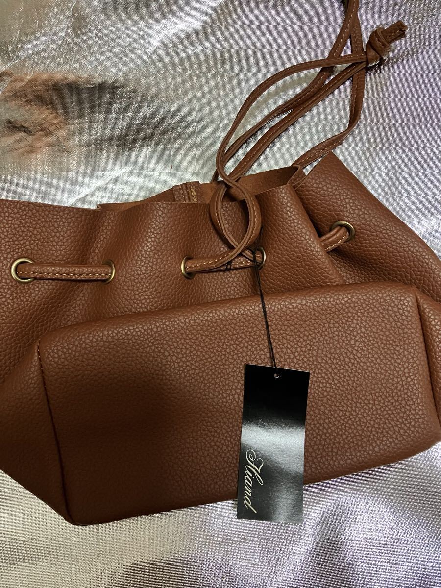 キャメル完売 定価5292円HIANDハイアンド 巾着バッグ/バッグインバッグ/堀江直美