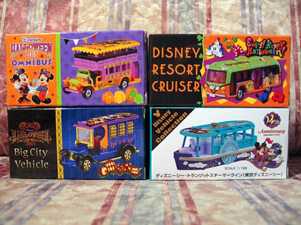 ■ご覧頂きましてありがとうございます。 ディズニー トミカ ハロウィン 2015 リゾートクルーザー オムニバス ビッグシティ ヴィークル トランジットスチーマーライン 14th 4台セット です。 箱に入れたまま暗所で大切に保管しておりました。 |