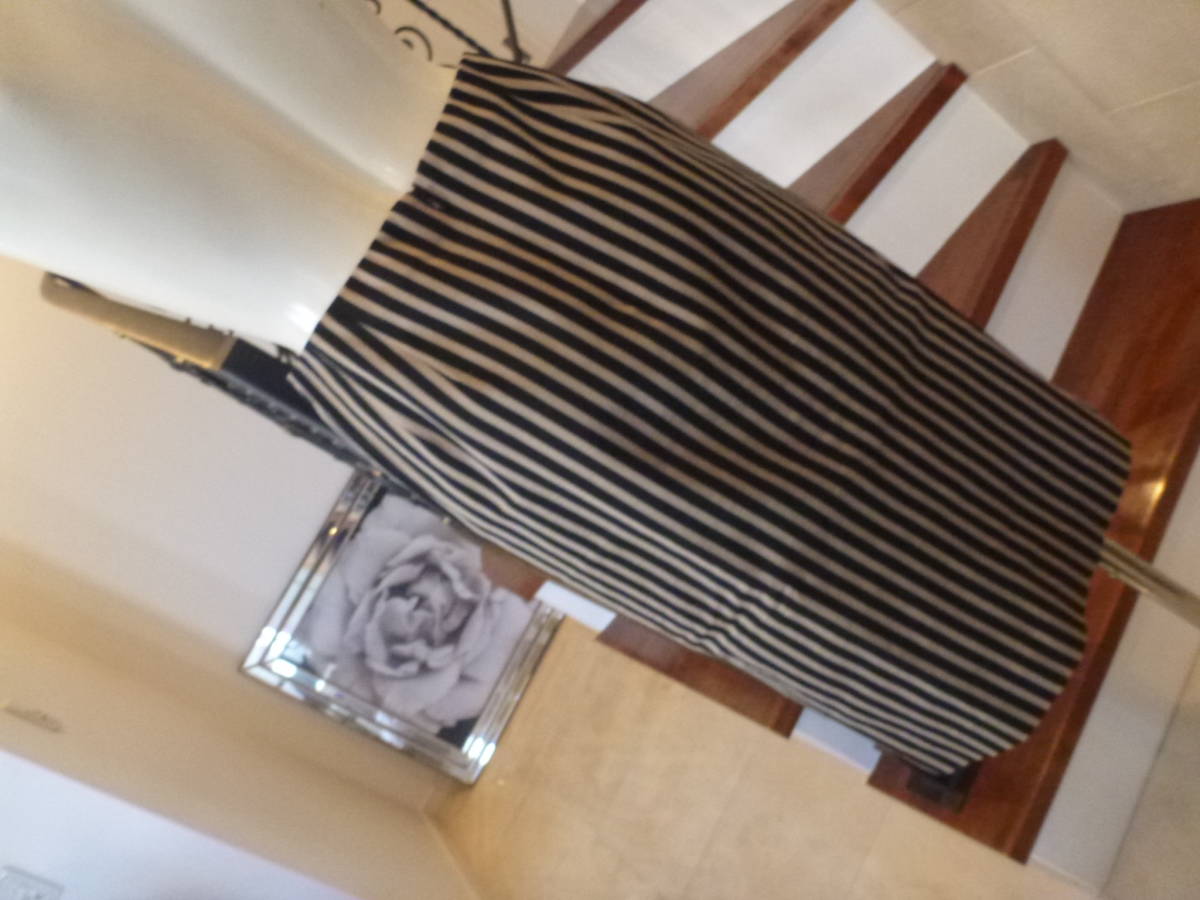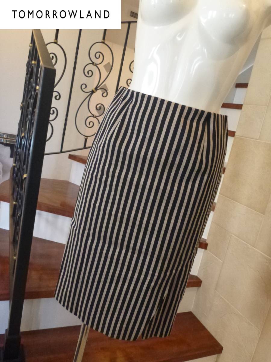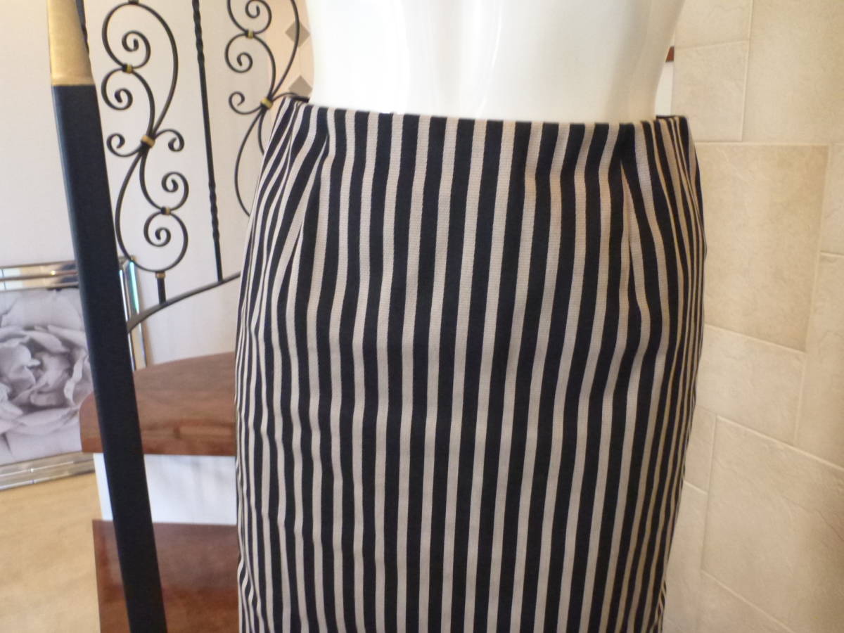 1.5万 美品 トゥモローランド(TOMORROWLAND)★黒×ベージュ ストライプ柄 タイトスカート36 S相当
