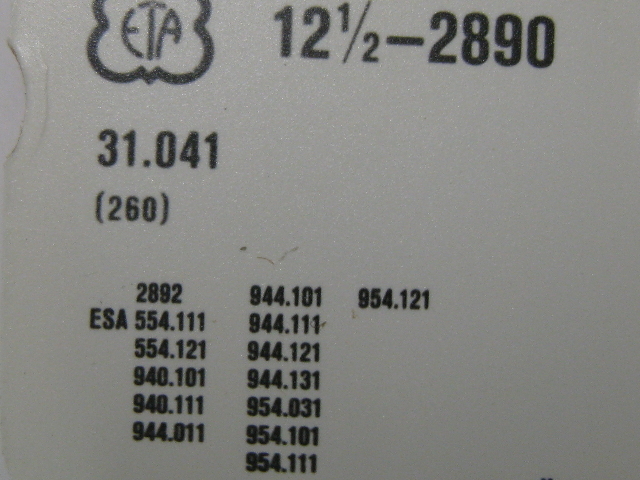 | Calibre | ESA 554.111 554.121 940.101 940.111 944.011 944.101 944.111 944.121 944.131 954.031 954.101 954.111 954.121 |