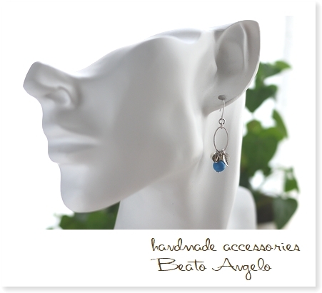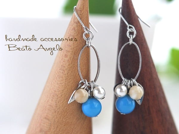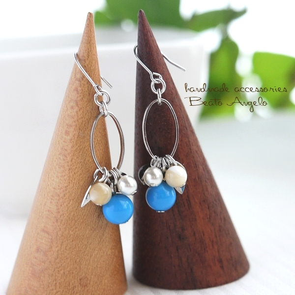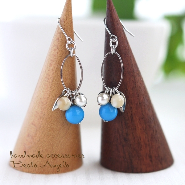 ◆+angelo+天然石ターコイズとスモーキークォーツのオーバルピアス(p-040)S マザーオブパール ブルー