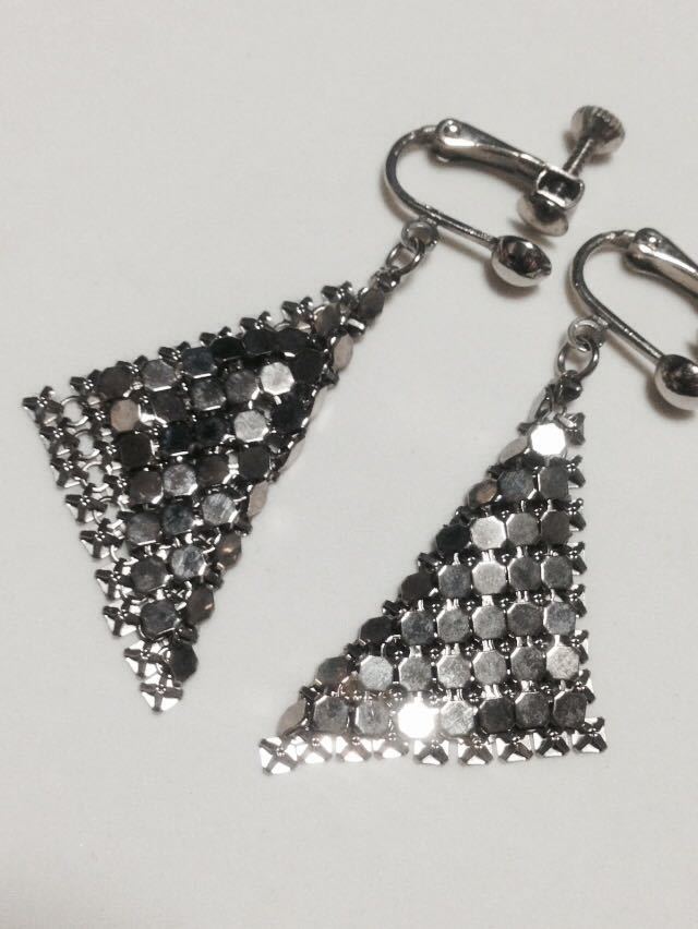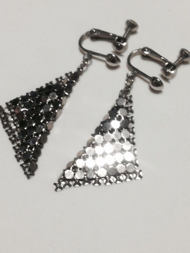 美しい、揺れる彫金デザインイヤリングです、シルバーカラーになっていて、希少なイヤリングです、トップのサイズは40×35ミリ、様式はネジバネ式です