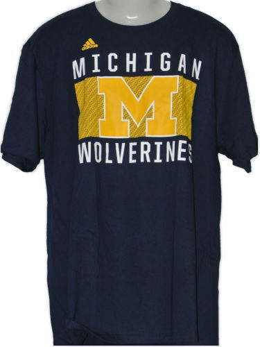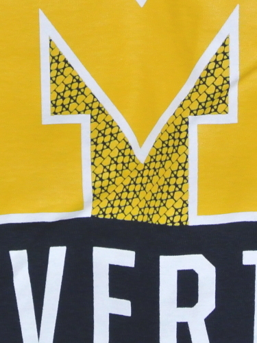 ミシガン大のチームカラー、ネイビーブルー×メイズ(イエロー)×ホワイトのトリコロールカラーTシャツです。