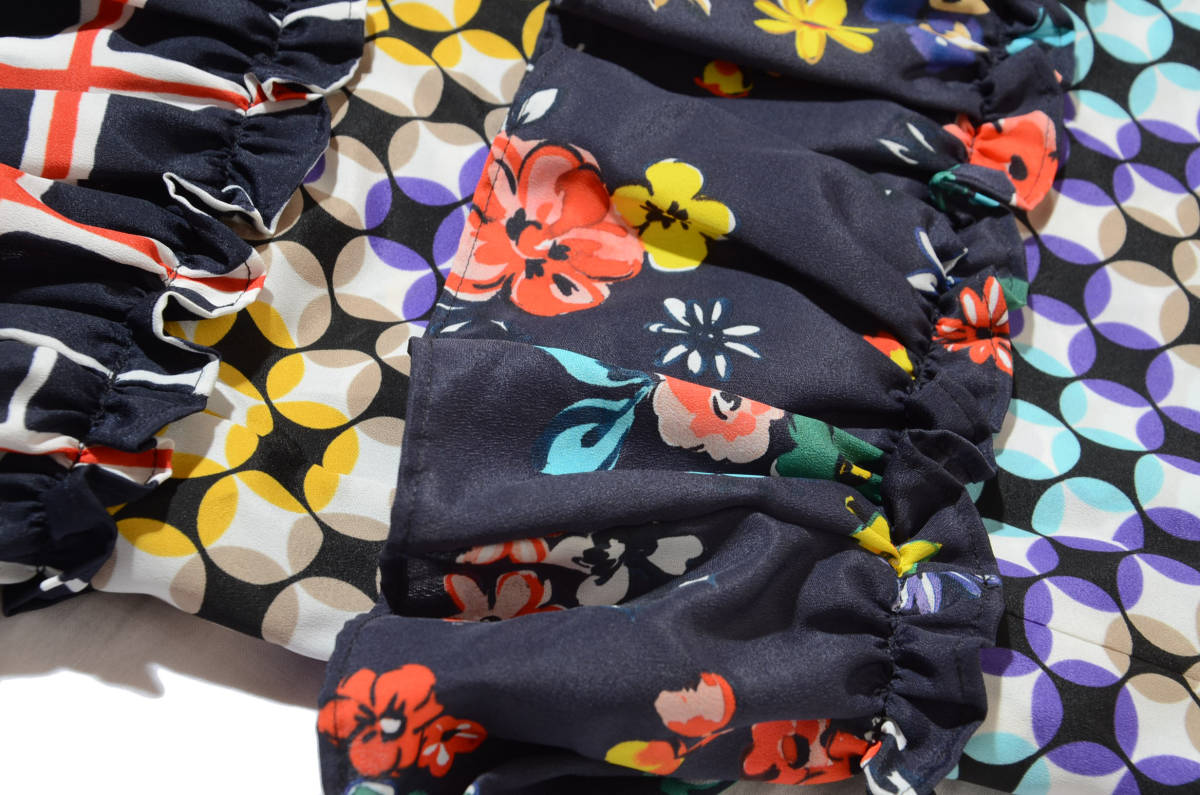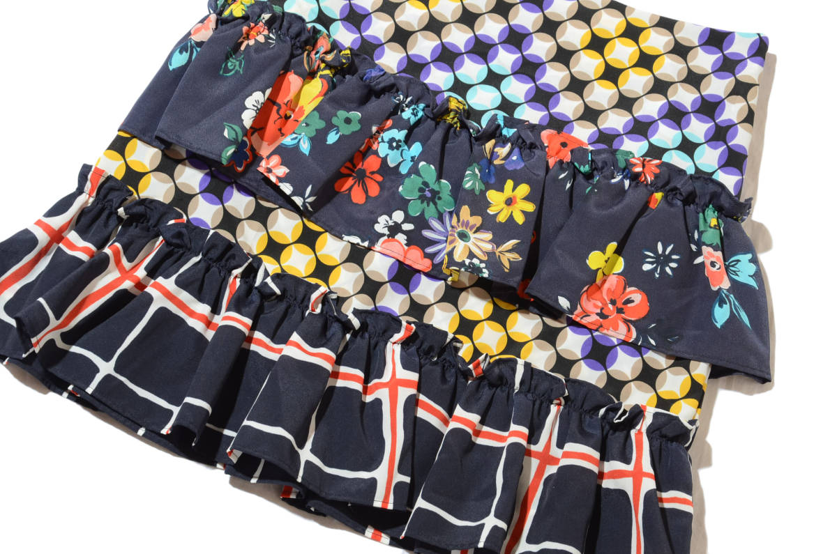 黒地×赤白チェックのティアードフリルの柄柄デザインがとてもかわいい