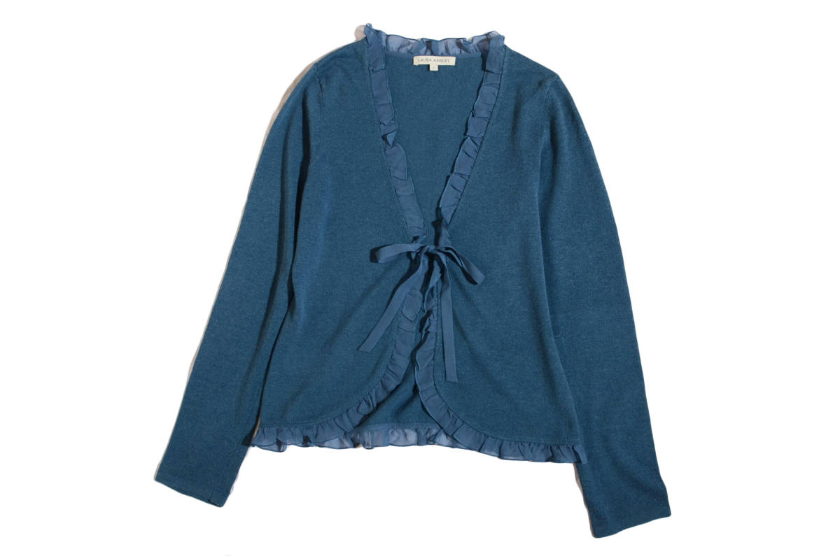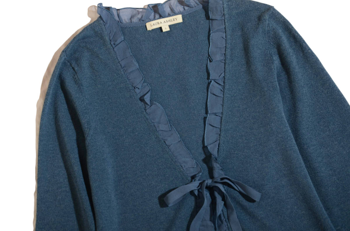 美品。ローラアシュレイ シルクフリルあしらいニットカーディガン S