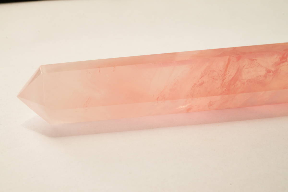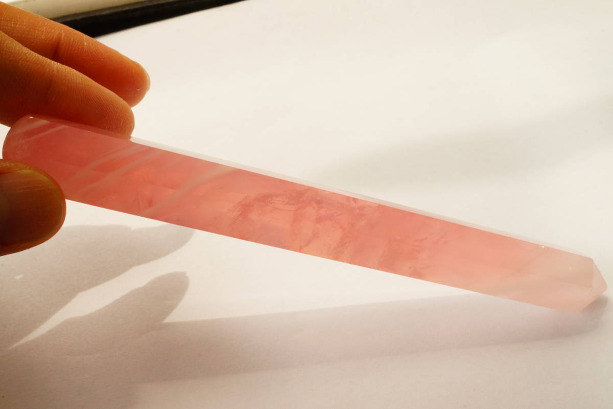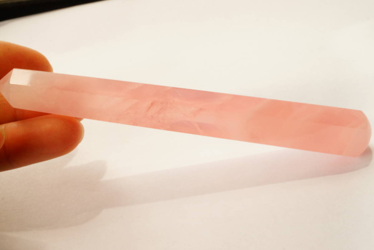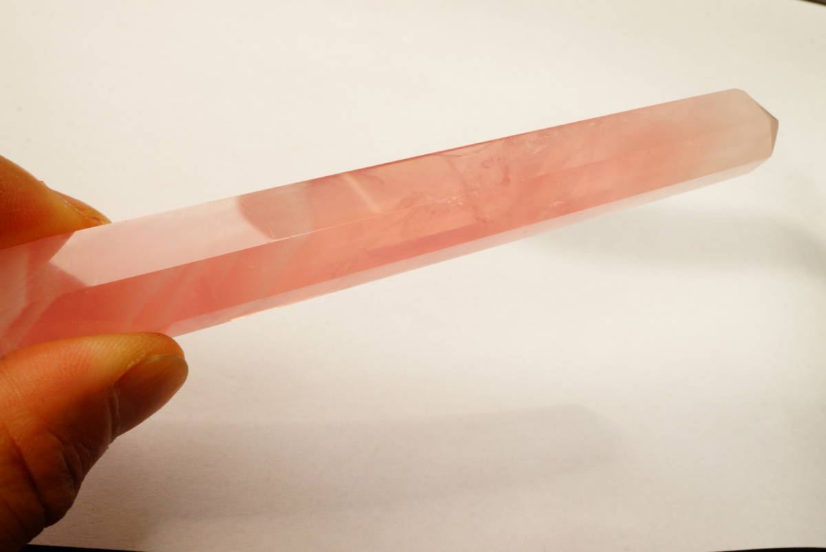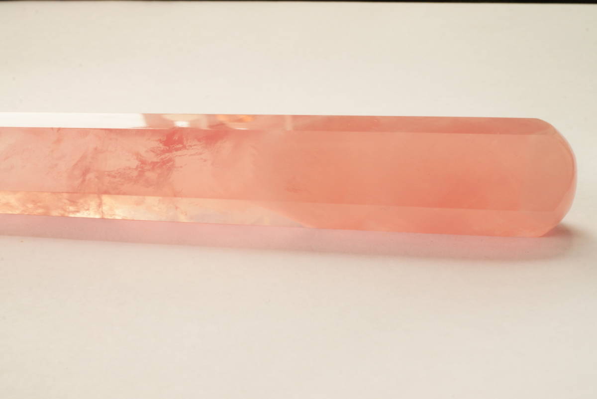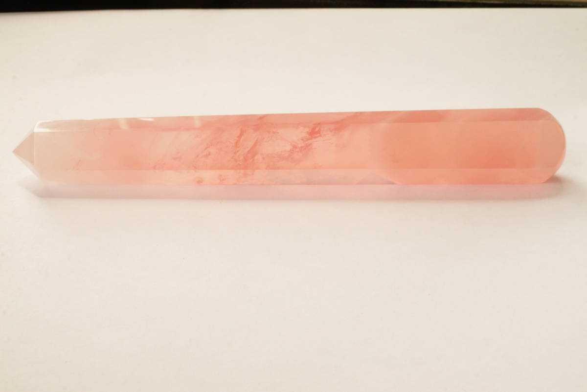 | 希少!早い者勝ち!透明度抜群ローズクォーツ(紅水晶)剣状「ツボ押し」オブジェ彫刻339ct/67.9g | |||||||||||