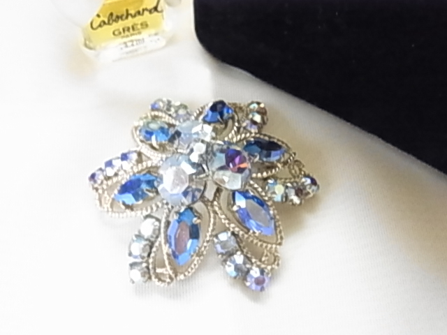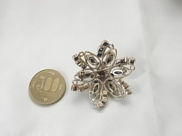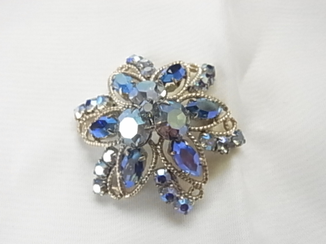 美しいスカイブルーの輝くジュエルストーン お花のようなデザイン フラワー キラキラのブローチ☆