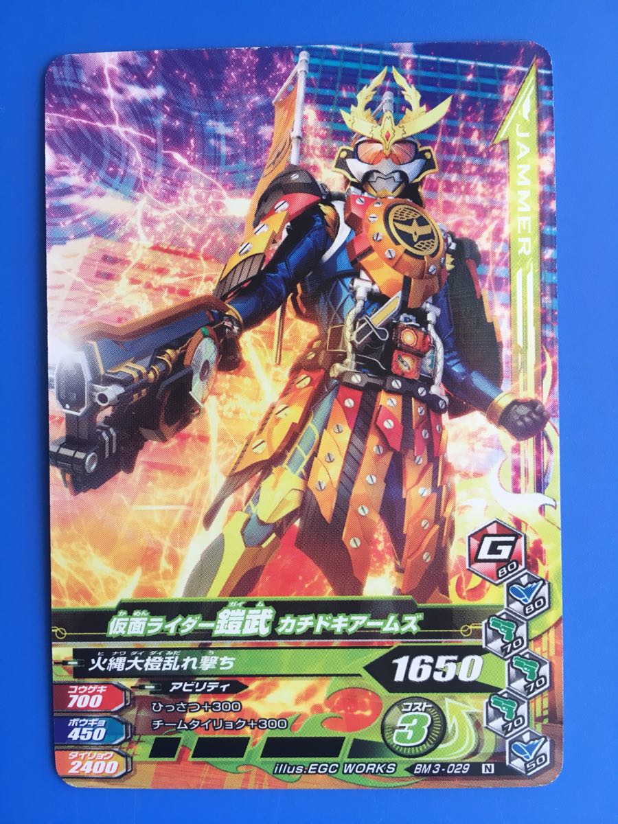 仮面ライダー、ガンバライジング・第BM3弾からNo.029《仮面ライダー鎧武・カチドキアームズ》の登場です。発送は、普通郵便を利用します。(特にご希望のない場合)おとりまとめも可能ですが、送料に変動する場合がございます。また、送料のご請求は、自宅での計量を基準にご請求させていただいておりますので、実際の金額と差異が出る場合もございます。予めご了承ください。他にも多数出品中です。まとめてこの機会にいかがでしょうか?ご質問お待ちしております。