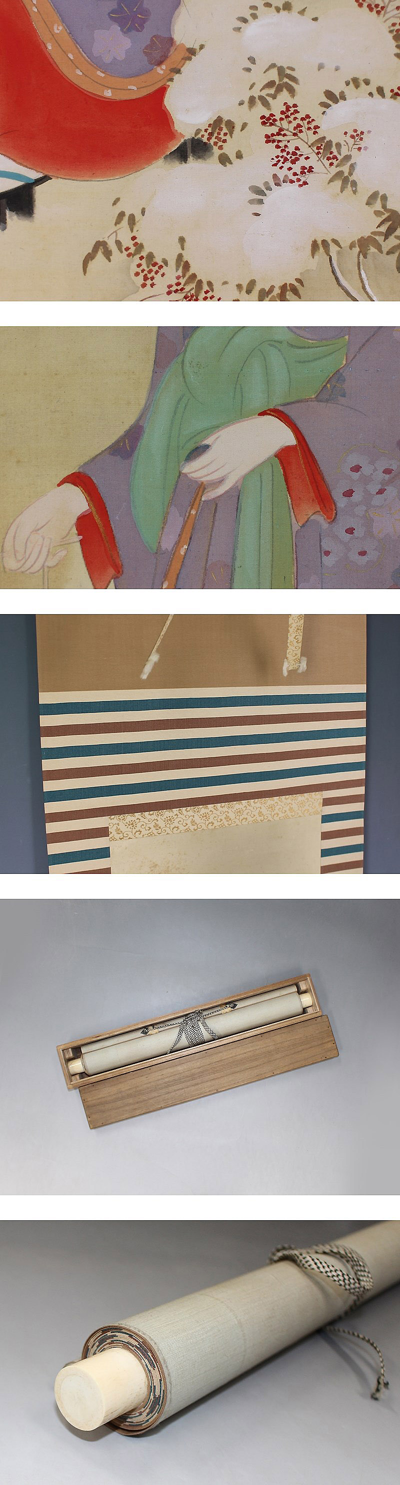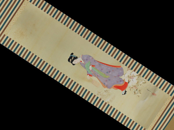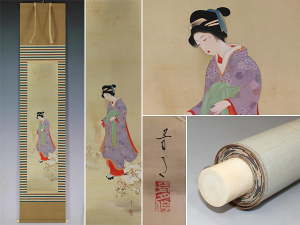 | №1409020【真作】横尾芳月【雪道に美人】◆絹本◆合箱◆掛軸 | |