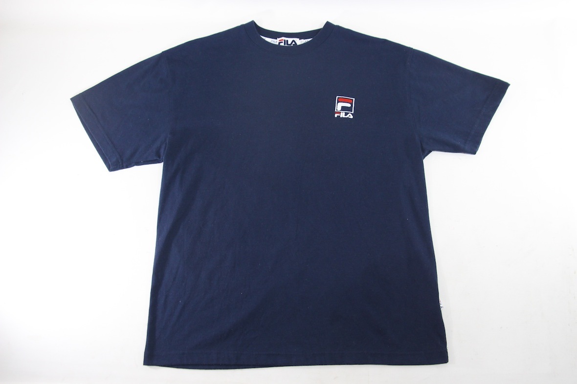 【希少品】90's FILA Tシャツ L ネイビー 紺 刺繍ロゴ tee 半袖 スポーツ フィラ