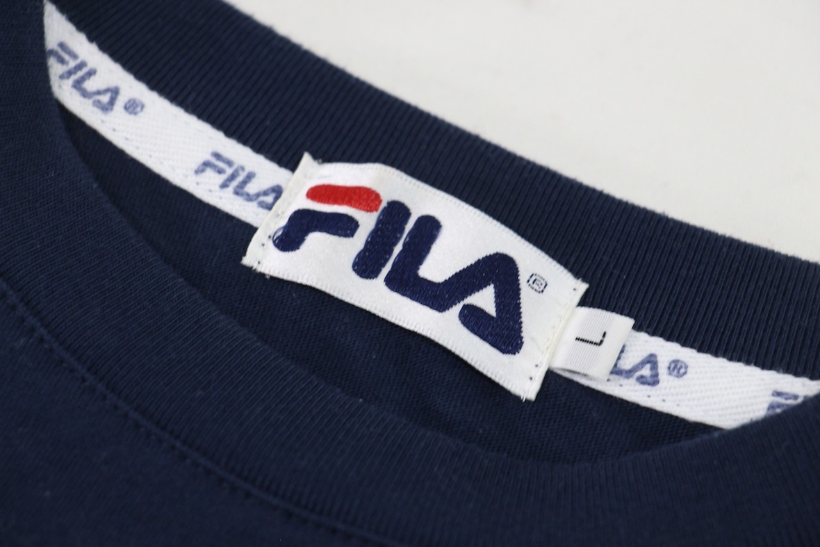 【商品名】【希少品】90's FILA Tシャツ L ネイビー 紺 刺繍ロゴ tee 半袖 スポーツ フィラ