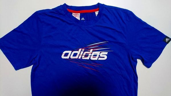 USED アディダス プリント Tシャツ ブルー 青BOYS【XL/15-16Y】