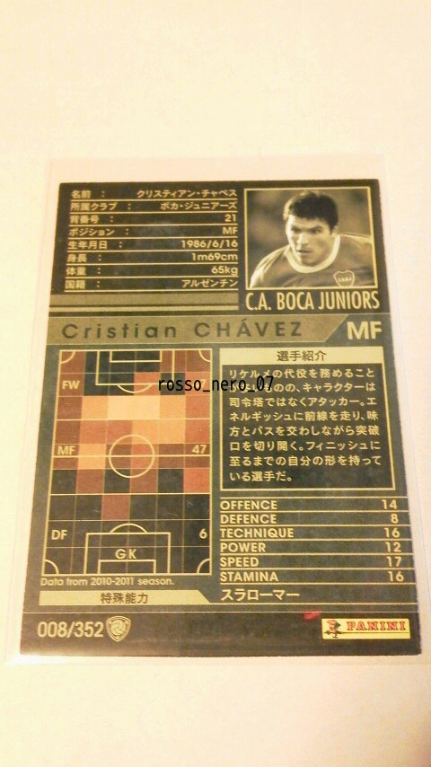 ☆WCCF2010-2011☆10-11☆008☆白☆クリスティアン・チャベス☆ボカ・ジュニアーズ☆Cristian Chavez☆C.A. Boca Juniors☆