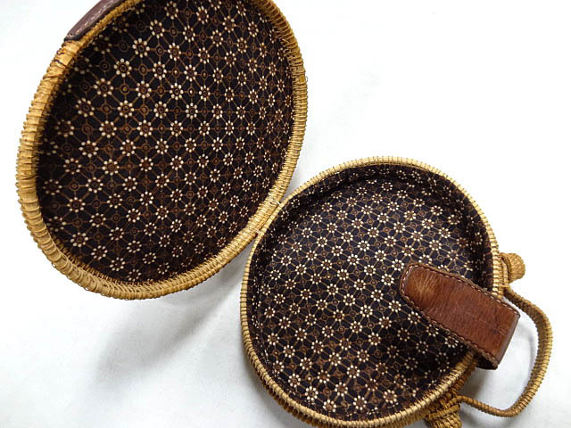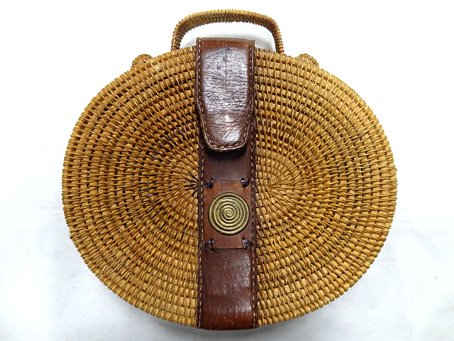 アイテム詳細:ヴィンテージ籐編みサークルハンドバッグ
