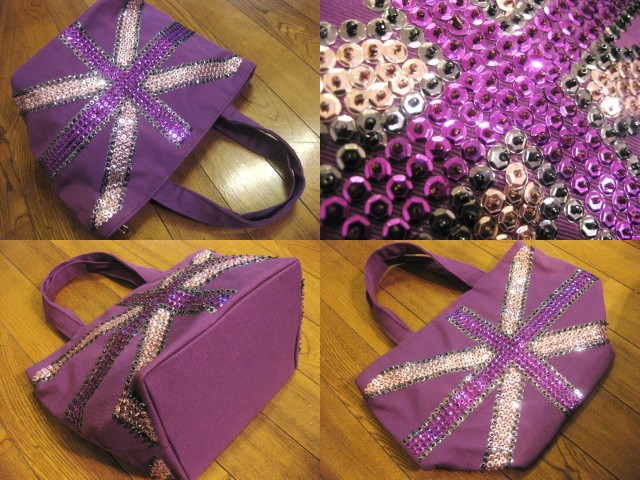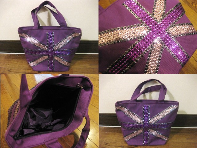 ■アイテム:ビーズ スパンコール 装飾 ユニオンジャック ハンドバッグ 鞄 かばん