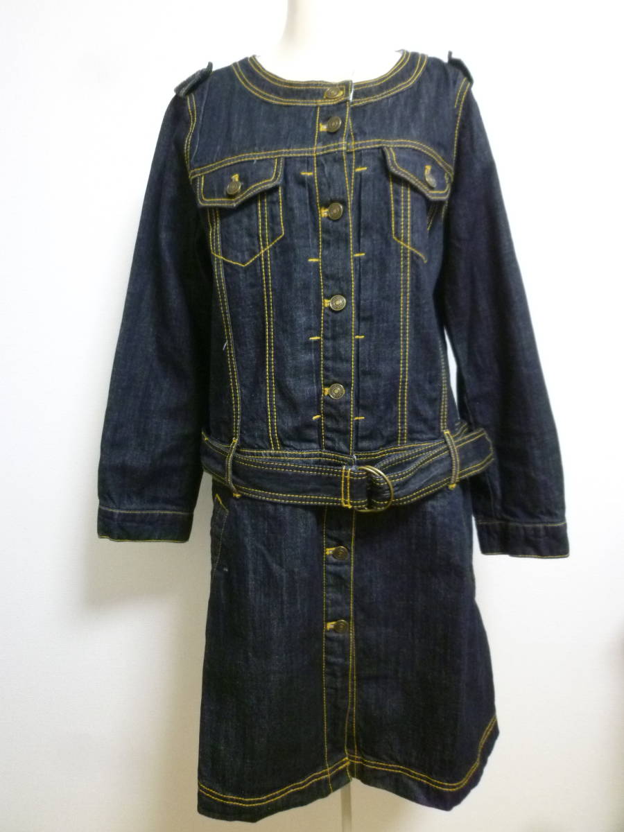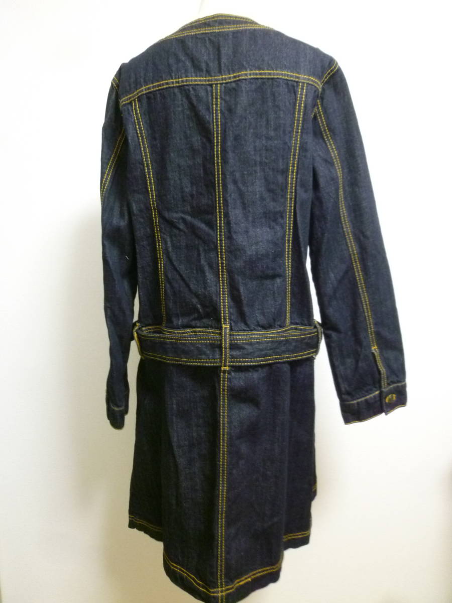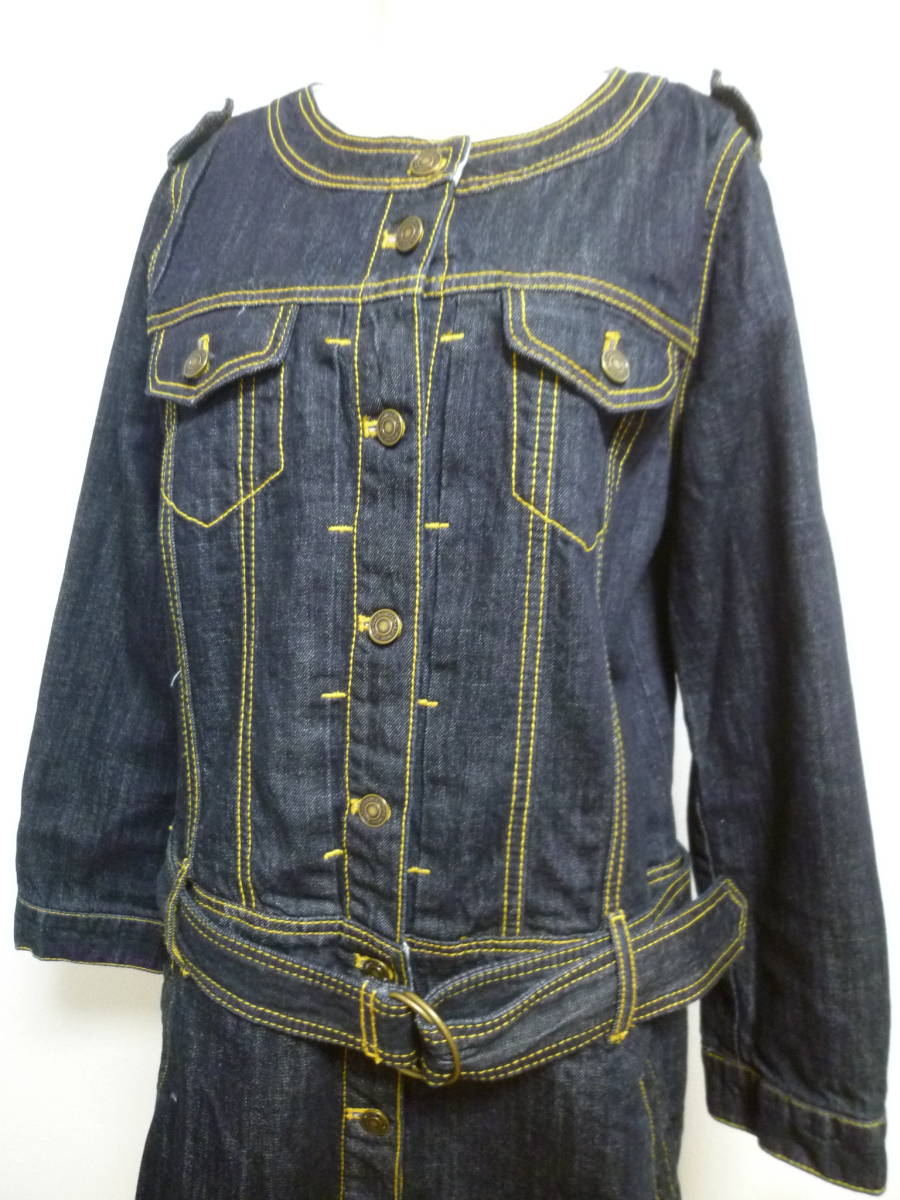 Walcha♪ブルーデニム前開きベルト付きノーカラーコートワンピースLL/大きいサイズXL膝丈長袖♪324
