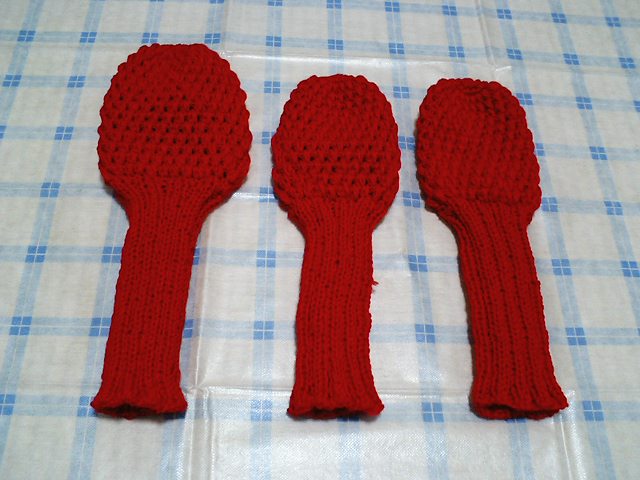 手編みヘッドカバー ウッド用 赤3個セット