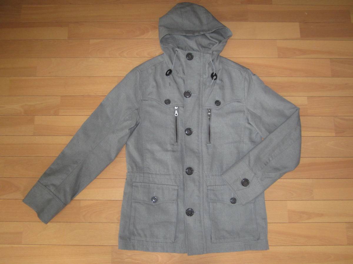 フロントはジッパーと大きめボタンオープン、フードを付けたショートコートになってます。