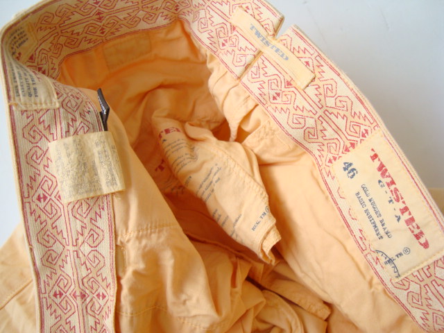 ・採寸:ウエスト 40cm(ウエストの生地あまり cm*背中側) 股上 24、5cm 股下 24、5cm ワタリ幅(腿付け根幅) 30、5cm 裾幅 25、5cm ダブル幅 cm 折り返し cm