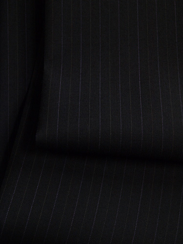 表地/ ウール49% ポリエステル51% 裏地/ 胴裏ポリエステル100% 袖裏ポリエステル100% 黒色地にチャコールグレーと紫色のラインが5mm間隔で交互にはいったストライプ柄 しなやかな肌触りでほど良い張りのある薄手の春夏用、紳士スーツ向けウールブレンド素材です。 春夏シーズンに対応致します。 | ||||||