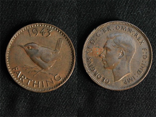 【イギリス】 ファージング 1943 小鳥 ミソサザイ ブロンズ銅貨