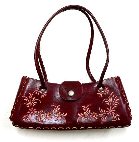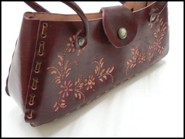 牛革 花柄 型押しハンドバッグ赤茶/レザーバッグALL20%OFF