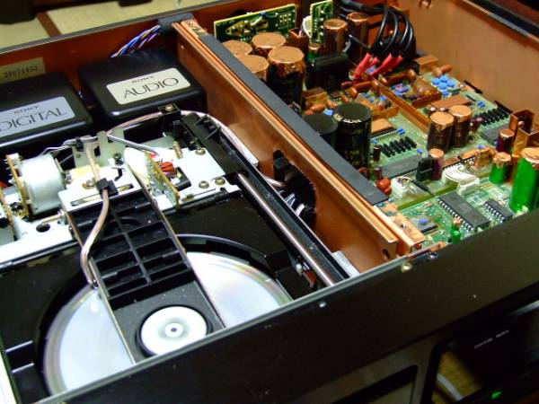 ▼写真左は、ディスク電荷除去システムを搭載し、チューンを施したmarantz SA-15S1のメカニズムです。写真中央、右は、チューニングを施した、当方 所有試作4号機のSONY CDP-557ESDです。CDの音質が、何故アナログレコードのような質感の音質にならないかを実験検証した試作機です。実際にはここまでチューニングは致しません。デジタルサウンドとアナログサウンドの調和。ピュア・オーディオからリアル・オーディオへの進化。マスター音源の音質への挑戦が当方のモットーであります。