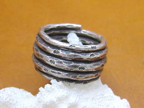 | ◆カレン族シルバーリング 渦03◆スパイラル5連・刻印・指輪 |