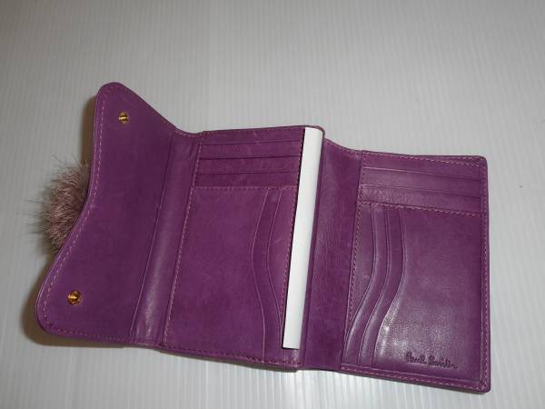本物★ポールスミスpaulsmith ラビット、牛革レザー財布 紫です。。正規品です。素材は牛革、ラビットです。色はパープルです。札入れ2つ、カード入れ12、ジップの小銭入れです。他にポケット2つです。
