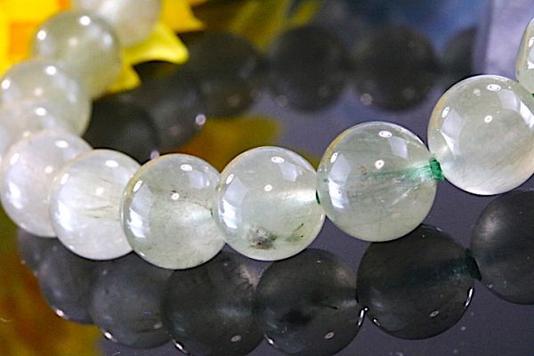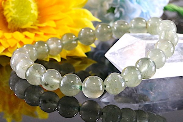 【送料無料】グリーン ラビット ヘアー ルチルクォーツ《珠径7mm内径15.5cm》水晶パワーストーン天然石ブレスレット厄除け金運激安4121