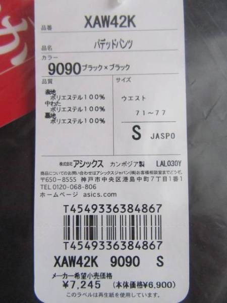 ★新品★asics★パデッドパンツ XAW42K、男用、Sサイズ、黒