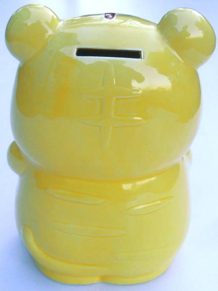 ★レトロ☆日本の扇子&がま口を持ったトラ貯金箱寅虎猫ネコTOKAIai