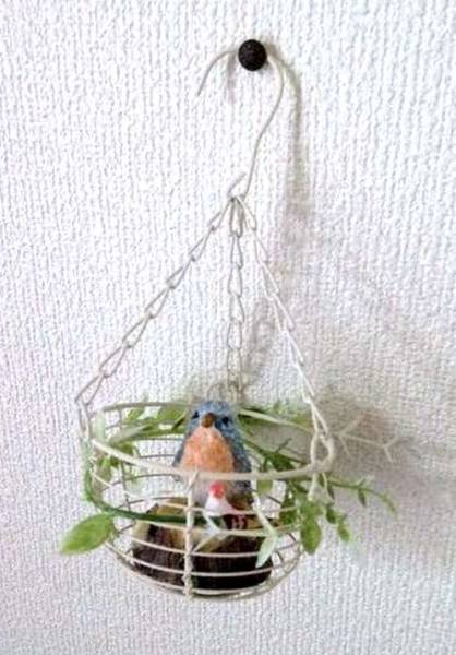 ミニチュア ブルーとピンクの小鳥ちゃん カゴ 壁飾り インテリア♪ | |||||||||||