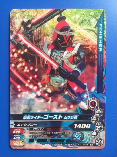 仮面ライダー、ガンバライジング・第K1弾からNo.006《仮面ライダーゴースト・ムサシ魂》の登場です。発送は、普通郵便を利用します。(特にご希望のない場合)おとりまとめも可能ですが、送料に変動する場合がございます。また、送料のご請求は、自宅での計量を基準にご請求させていただいておりますので、実際の金額と差異が出る場合もございます。予めご了承ください。他にも多数出品中です。まとめてこの機会にいかがでしょうか?ご質問お待ちしております。