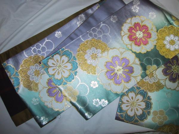 なお、振袖用とタイトルはつけていますが、振袖、訪問着、無地などのきものにもつかっていただける、柄が大きくなくおとなしい柄の出品もあります(出品者IDをクイックして一覧よりご覧くださいませ)(長さは、標準で、訪問着なら二重太鼓にしていただける長さは、当然、振袖なら変わりむすびにはしていただける長さです)