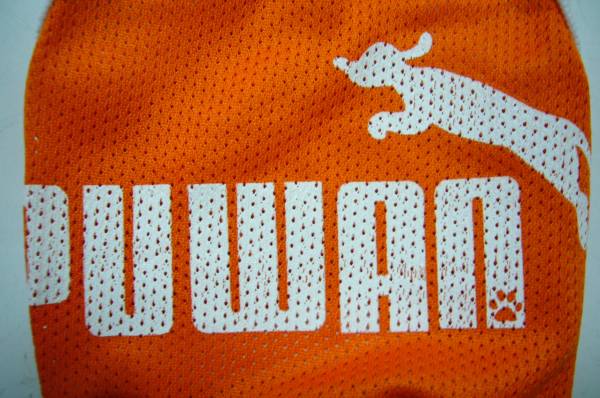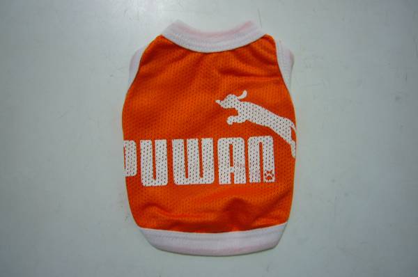 某スポーツメーカー×××ならぬpuwanのロゴが入ったTシャツです。メッシュ地なので涼しく、濡らして着せることの可能です。