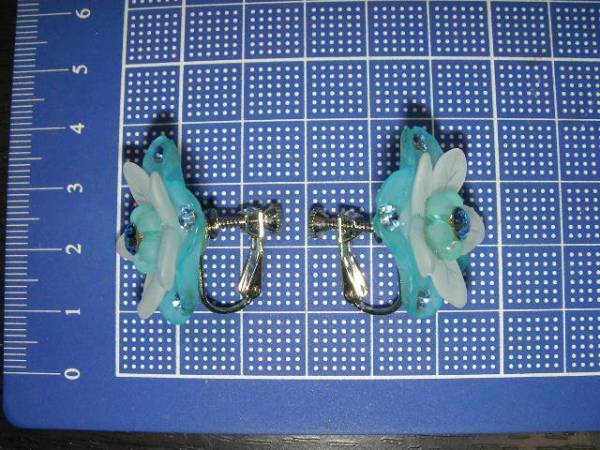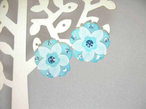 32*キラキラ さわやか お花 イヤリング 検 水色 ポップ POP カジュアル 普段使い ガーリー レトロ サイケ