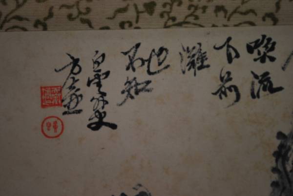 【作品状態】 本紙は紙本肉筆です。  本紙は薄汚れ、全体に糊シミあります。表装は紙表装で全体に汚れシミあります。