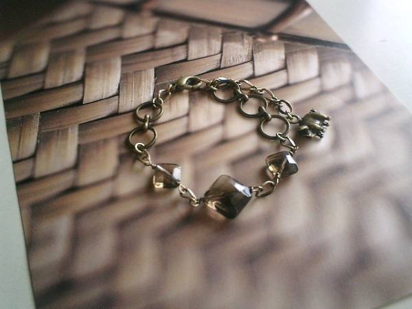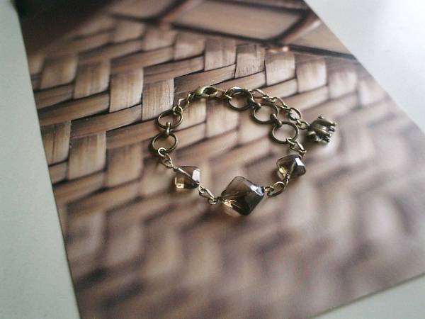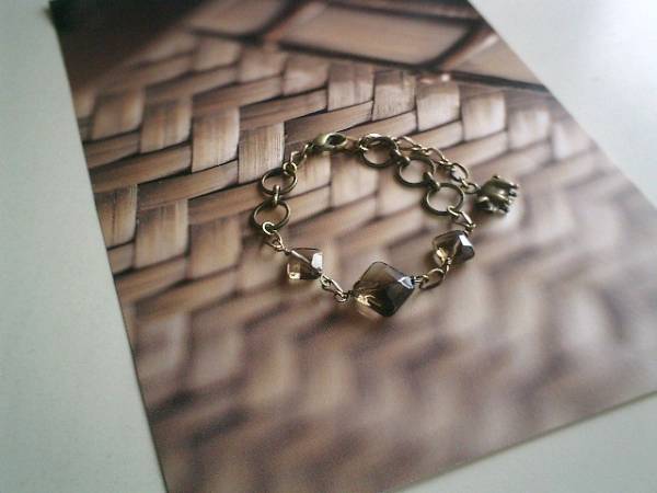 秋色・セレクション・・シリーズでス♪夜のオペラ座・・シックなスモーキークォーツのブレスレットです♪9ミリ、11ミリの大きさ違いのダイヤカットのスモーキークォーツにデザインチェーンを合わました♪繊細なカットが神秘的な表情です♪長さは全長23センチ位で調節自由です♪お揃いのネックレスも出品しています♪シンプルで飽きのこないいつまでも着けられるデザインを考えて作りました!ハンドメイドをご理解頂いてノークレーム、ノーリターンでお願いします