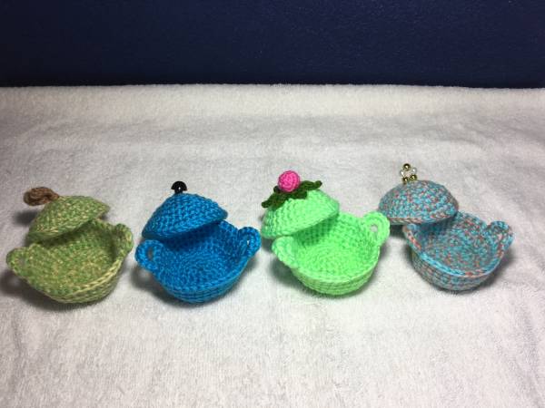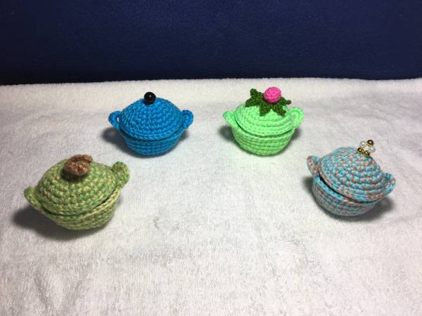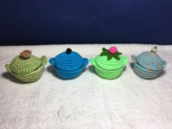 編みぐるみ  ハンドメイド小物入れかご(鍋式) 可愛い置物 四つ