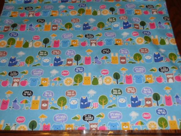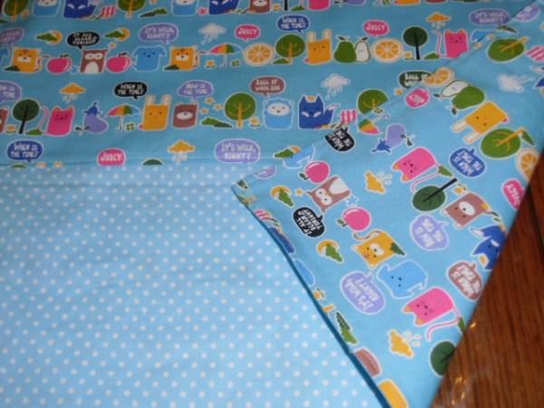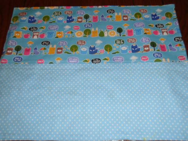 表面 上部 水色アニマル柄    下部 水色生地に白色ドット柄