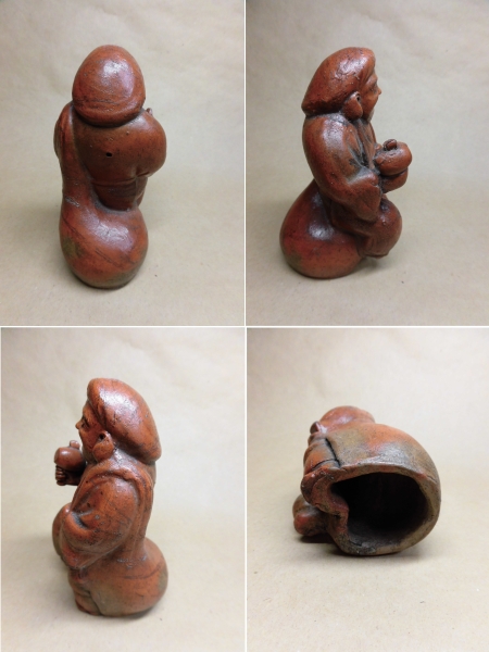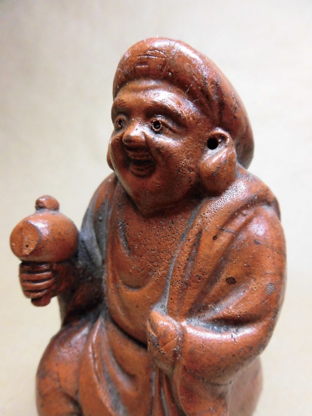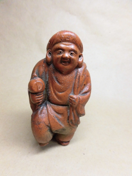 江戸後期頃の備前・大黒天像です。片足を上げた大黒は珍しいです。高13センチです。