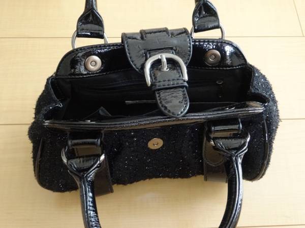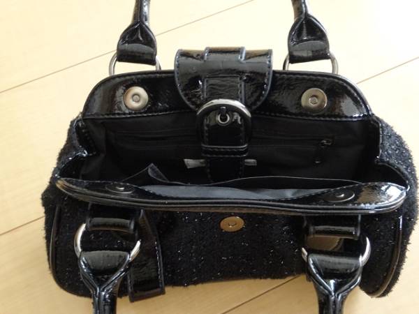 soint joie 黒色のコンパクトハンドバッグです。 数回の使用で、クローゼットの中で保管していました。 スレやシミ汚れや色褪せ等なく、とても綺麗です。 飾りベルトがおしゃれなバッグで、多用途に使えると思います。 マグネットホック開閉式で便利です。 内ポケットがたくさんあり、小物整理等に役立ちます。 サイズ:縦21cm、横28cm、マチ12cm |